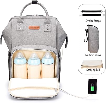 Amazon Com Mochila Para Panales Con Puerto De Carga Usb Y Correas Para Cochecito Bolsa Para Panales De Maternidad Con Bolsillo Aislado Para Biberon Mochila Unisex Multifuncion Para Panales L Gris Baby