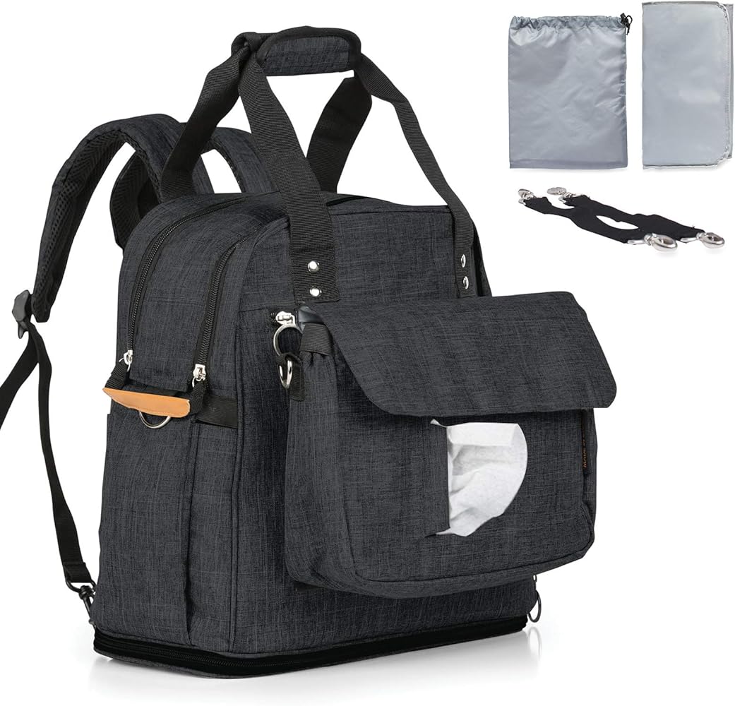 Amazon Com Sunup Mochila Para Panales Mochila De Viaje Para Bebe Cremallera Abierta Con Una Sola Mano Gris Negro Baby
