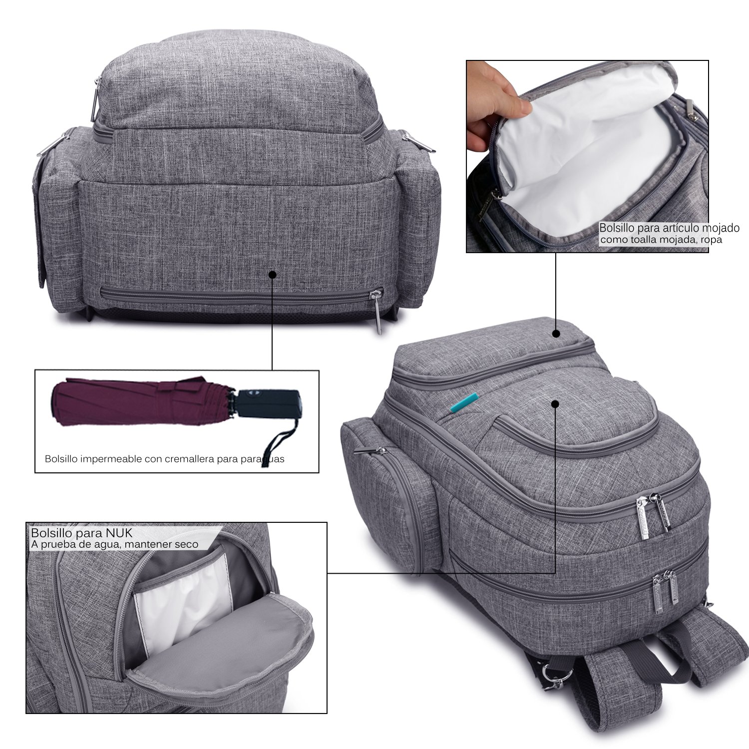Gris Xnuoyo Mochilas De Panales Gran Capacidad Mochila De Cambio Bebe Multifuncional Bolso Del Bebe Mama Impermeable Bolsa De Panales Con Aislado Bolsillos Y 2 Correas De Cochecito Y Cambiador Mochilas Para