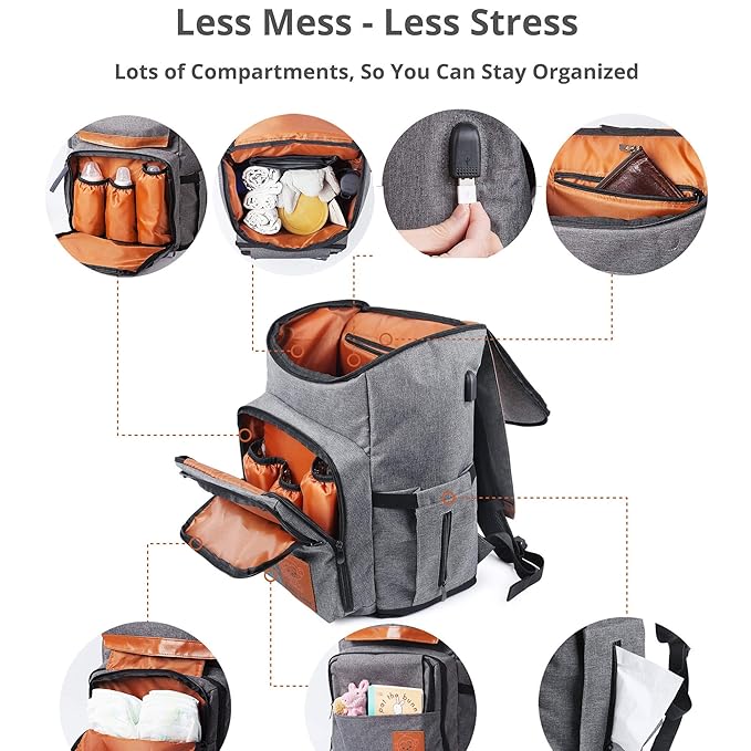 Amazon Com Mochila Grande Para Panales Cambiador Multifuncion Impermeable Unisex Bolsa De Panales De Viaje Con Puerto De Carga Usb Para Mama Y Papa Con Bolsillos Aislados Duradero Y Elegante Baby